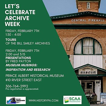 The Bill Smiley Archives at the Prince Albert Historical Museum, 10 River Street East, will be celebrating Archives Week 2025 with tours of the archives and a presentation by Fred Payton "Museum Musings: Inspiration and Research"