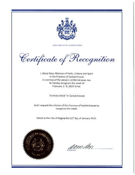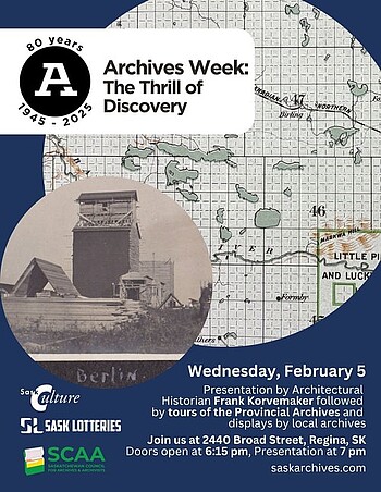 The Provincial Archives of Saskatchewan will be participating in Archives Week 2025 with a presentation by Architectural Historian Frank Korvemaker followed by tours of the Provincial Archives and displays by local archives with free refreshments.