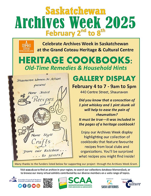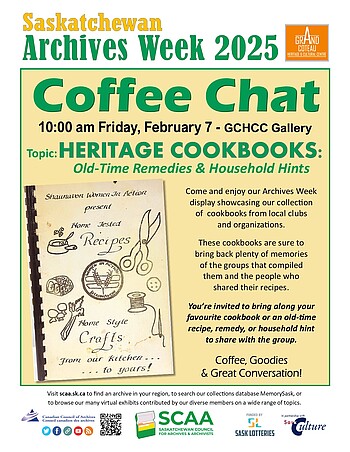 February 7: Morning Coffee Chat session using our project as the topic for discussion. Those attending will be invited to bring along their favourite cookbook or an old-time remedy or household hint to share with the group. We will collect those favourites, compile them, and make copies of our own Archives Week 2025 Mini Cookbook for the participants to take home!