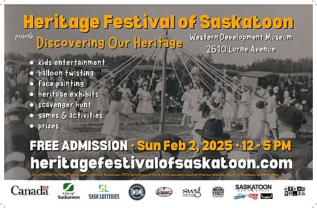 Sunday, February 2nd features another traditional Festival Day celebration at the Western Development Museum. This fun, family event runs from 12 – 5 PM with live entertainment, heritage exhibits, kids’ activities, and more!