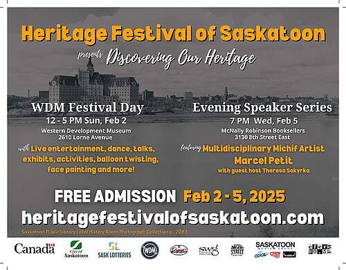 The SCAA and Saskatoon members will be displaying and presenting at the 2025 Heritage Festival of Saskatoon, celebrating Saskatoon and area’s civic, natural, cultural, and artistic heritage, and featuring events on Feb 2nd and 5th.